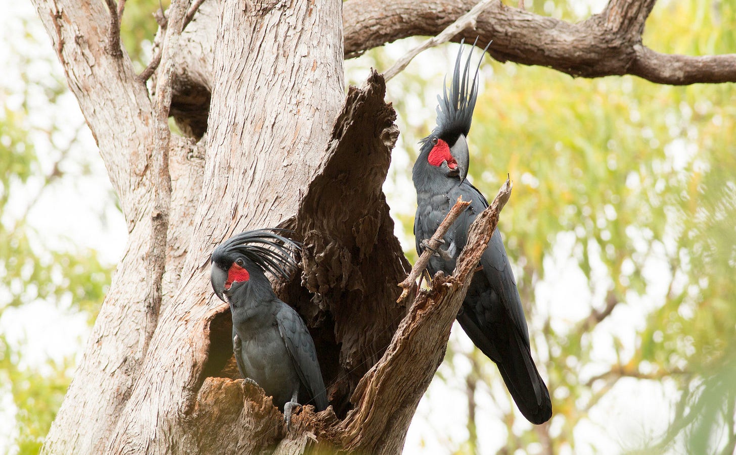 Palm cockatoos are the world’s largest cockatoos, living in the rainforest remnants of northeastern Australia and New Giunea. They nest in hollow trees, within which they use thin strips of tree branches to make a supportive, porous base. But not all of the plant parts that these birds detach and strip make it into the nest. Occasionally a male cockatoo—only rarely a female—stands at the edge of the nest and uses a stick or seedpod to rhythmically tap out a beat. This makes them the only animals known to specifically make and use a tool for percussion, other than humans of course. The purpose of this banging display appears to be social, attracting a mate or signalling the presence of the bird out into the surrounding forest, up to 100m away. But it may also be an audible clue to just how good the nest itself is.
